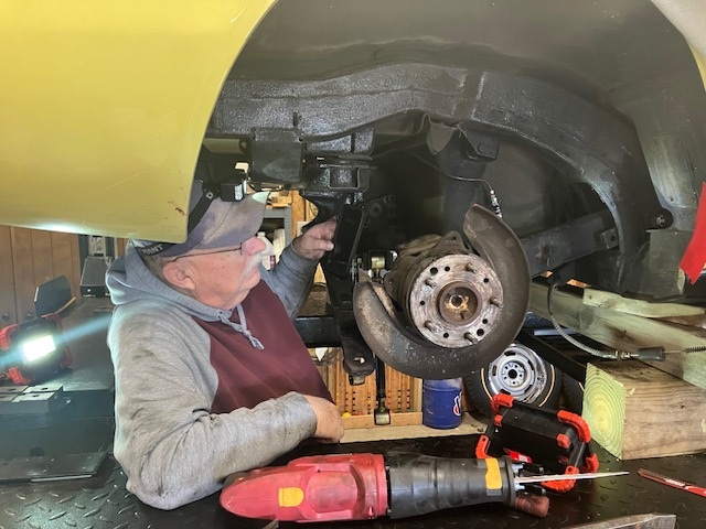 I had the pleasure of working with club member, Steve Arnold, to remove and replace the rear suspension trailing arms in his ’68 Corvette. The trailing arms are left and right side suspension components that link the chassis to the rear wheels. They transmit all of the accel and decel forces from the rear wheels to the chassis. The trailing arms also house the rear spindle bearings that support the weight of the car plus all the dynamic forces. After 57 years, Steve rightly worried that the bearings were worn and the lubricating grease dried out.