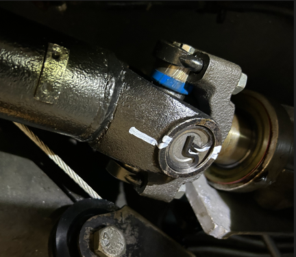 The next step is to remove the driveline. The driveline should be ‘marked’ at each end to maintain the same alignment upon re-installation.